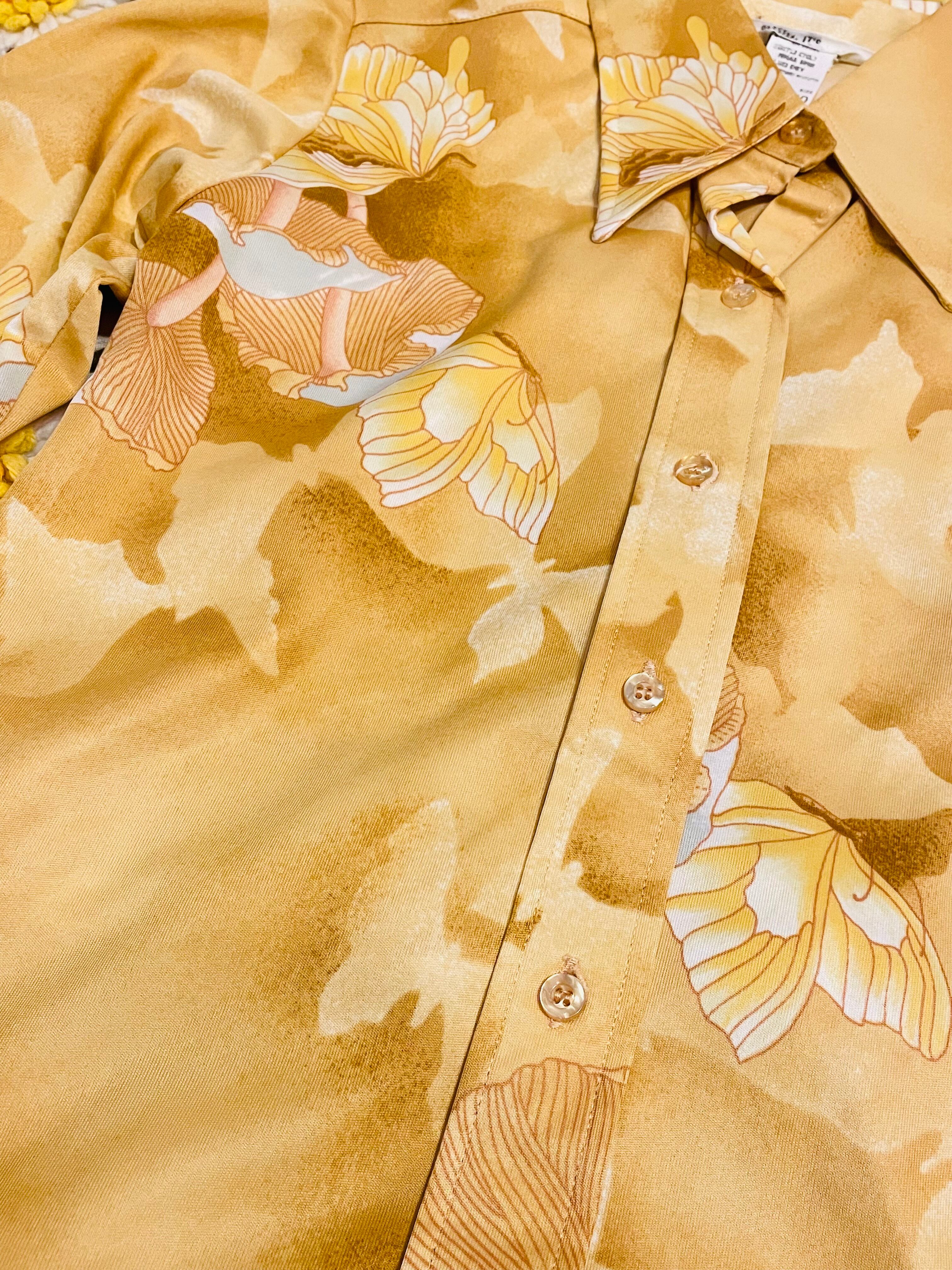 70'sヴィンテージのバタフライとキノコ柄シャツ。