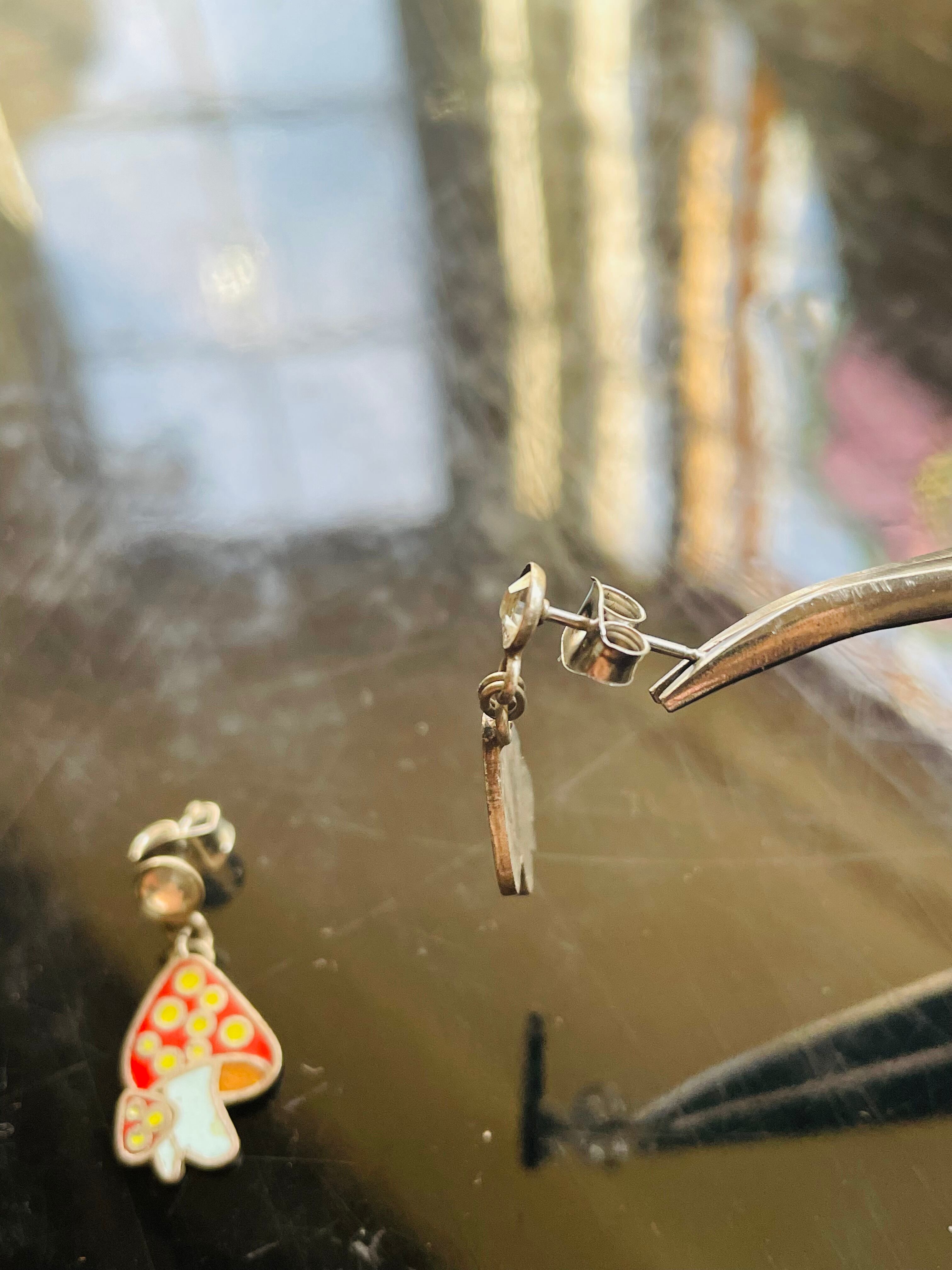 ヴィンテージの小さなキノコのメタルプレートピアス。